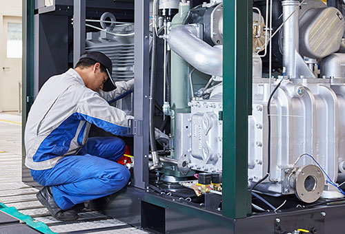 私たちは、お客様の重要設備である圧縮空気製造設備の安全・安定供給をサポートするメンテナンス・サービス会社です。
